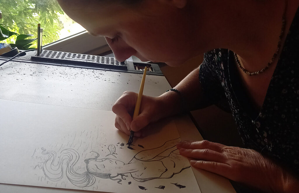 Depuis mon plus jeune âge, le dessin fait partie intégrante de ma vie. On dit souvent que je suis née avec un crayon à la main, et ma mère aime rappeler que je n’ai jamais cessé de gribouiller, observer et créer. Après une formation en arts plastiques aux Beaux-Arts de Tamines, j’ai poursuivi mes études à l’Académie des Beaux-Arts de Namur, en bande dessinée et illustration. Avec le groupe Les Harengs Rouges, j’ai participé à plusieurs publications (La ville rêvée, La vallée rêvée, Namur hors les murs), tout en publiant une histoire courte dans la revue 64_page.